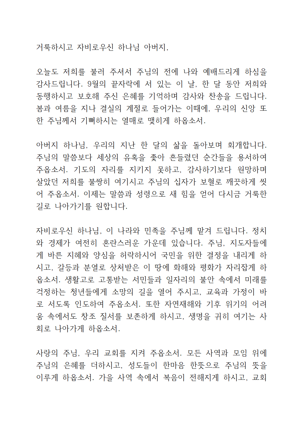 9월 주차별 대표기도문 (파일 첨부)