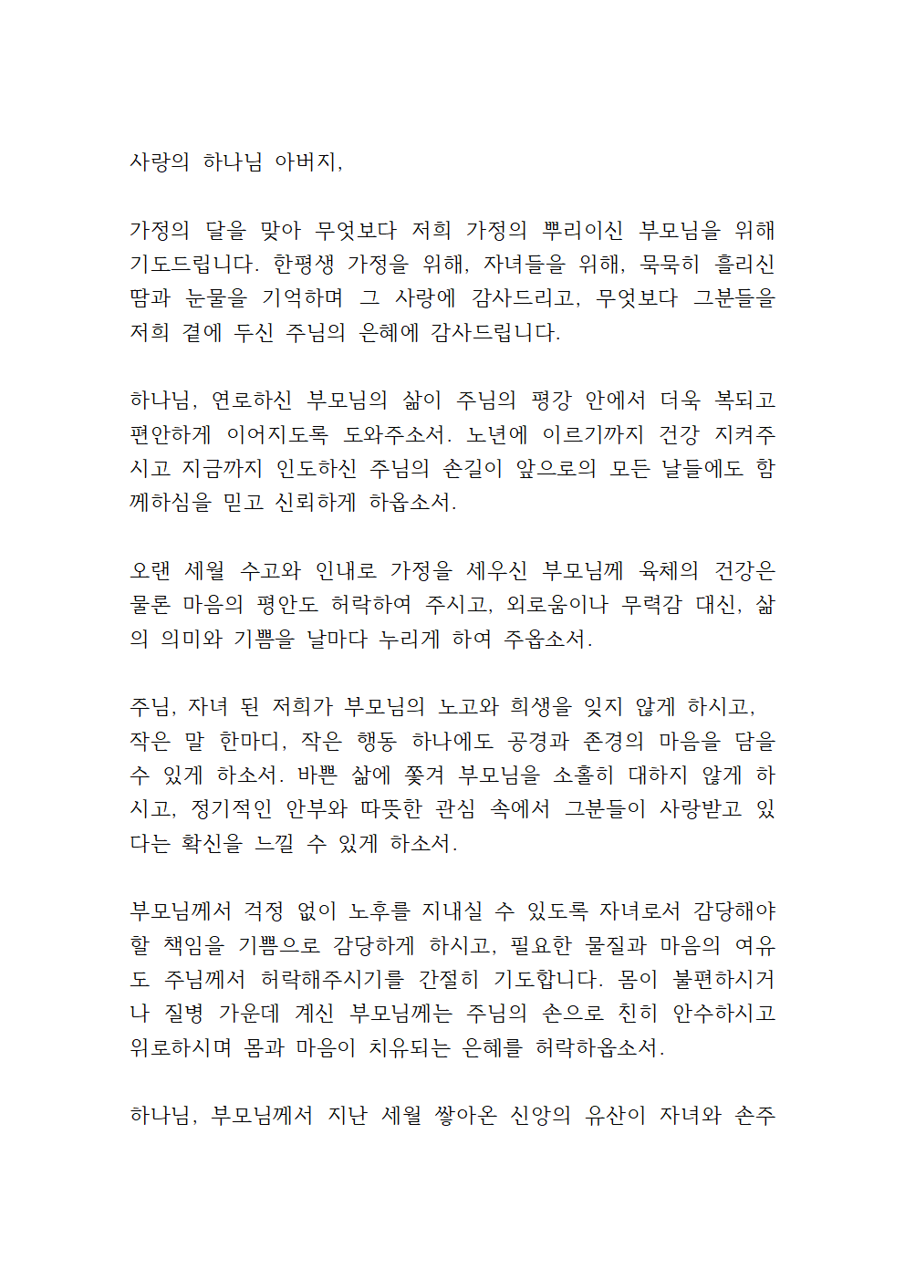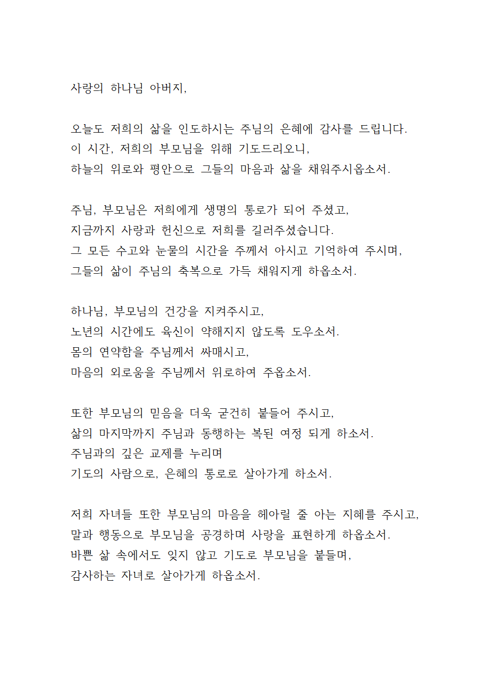※ 부모님 기도 시 다음의 기도문들을 함께 참고해서 기도해 보세요.