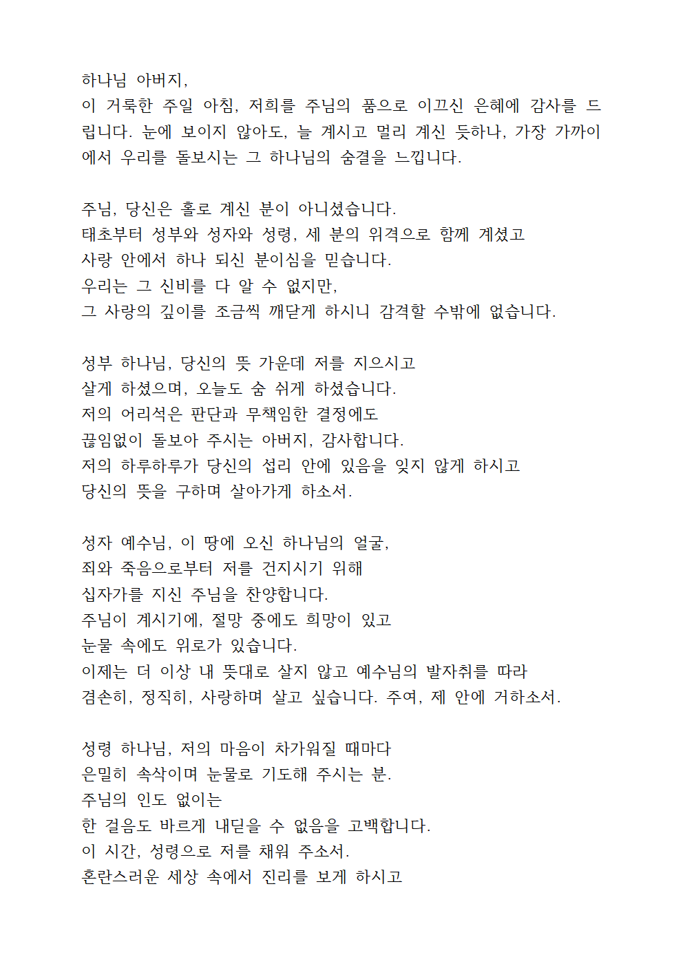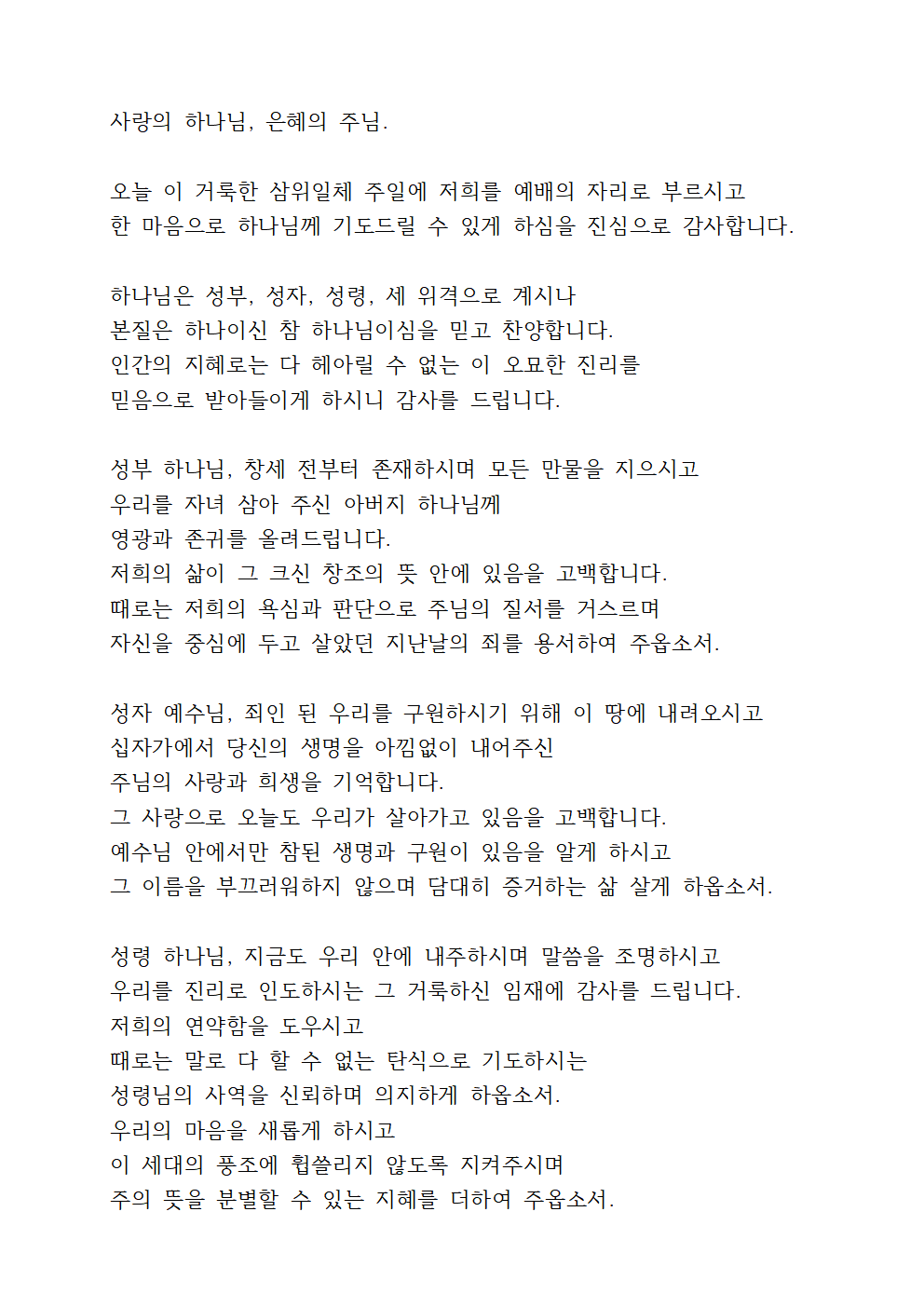 이번 글에서는 6월 셋째 주일인 삼위일체 기도문 모음 (hwp 파일)을 안내해 드리겠습니다.
