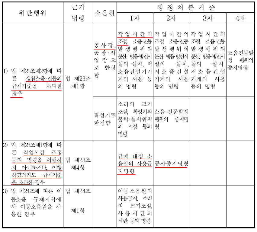 생활소음 행정처분기준