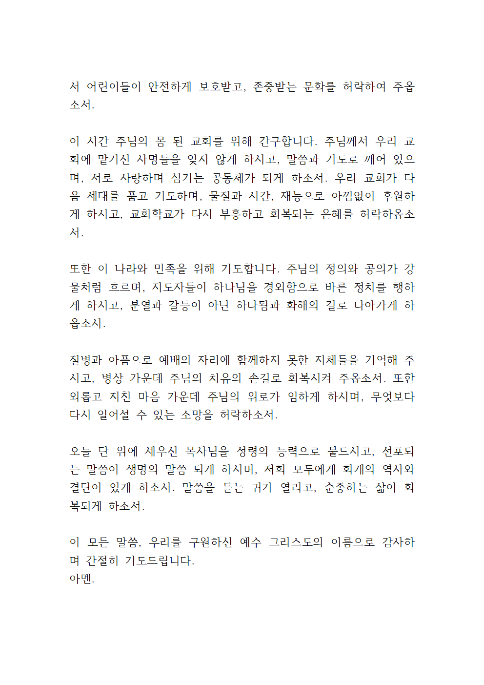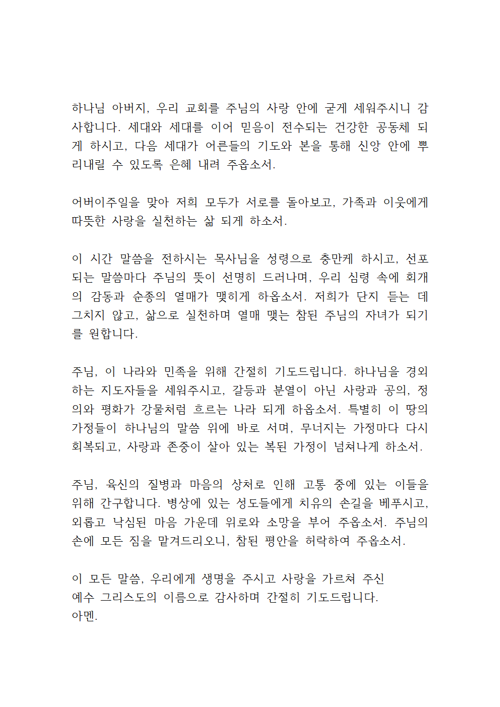 이 모든 말씀, 저희의 구주 되시는 예수 그리스도의 이름으로 감사하며 간절히 기도드립니다.