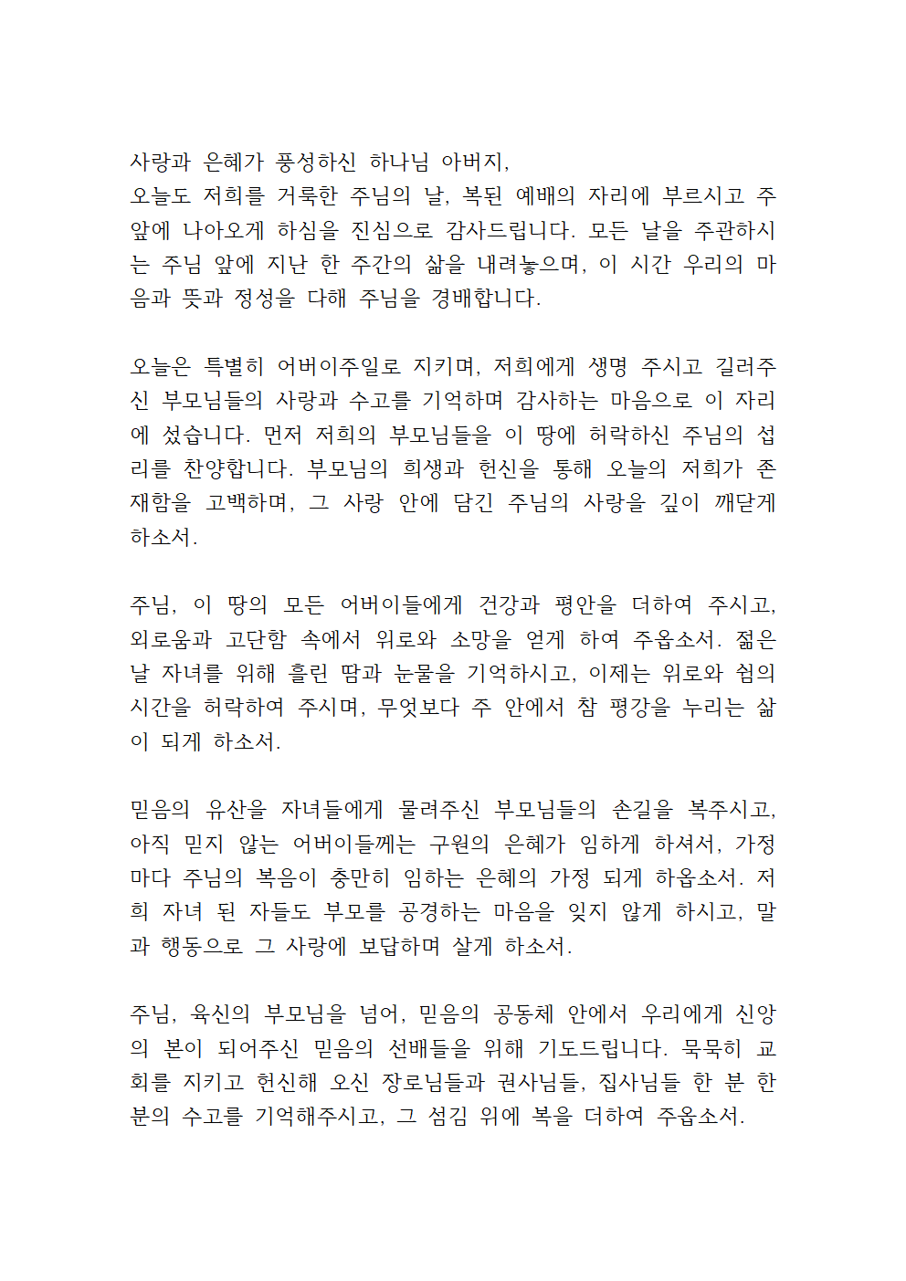 어버이주일 기도문 1,2,3