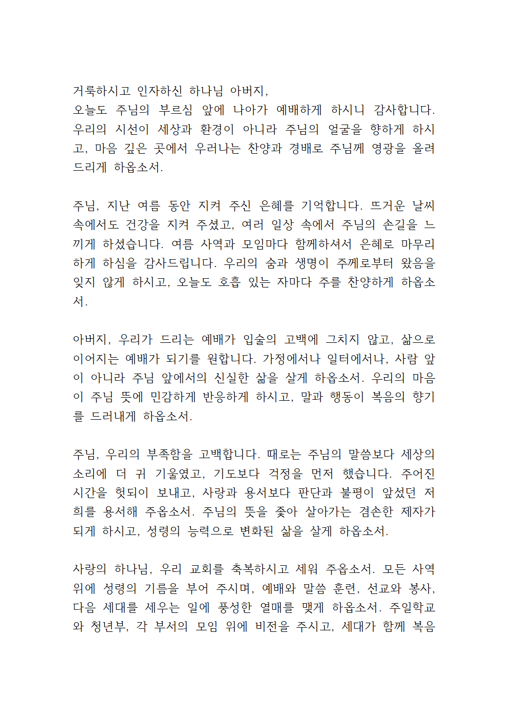 이번 글에서는 8월 넷째주 대표기도문을 안내해 드리겠습니다.